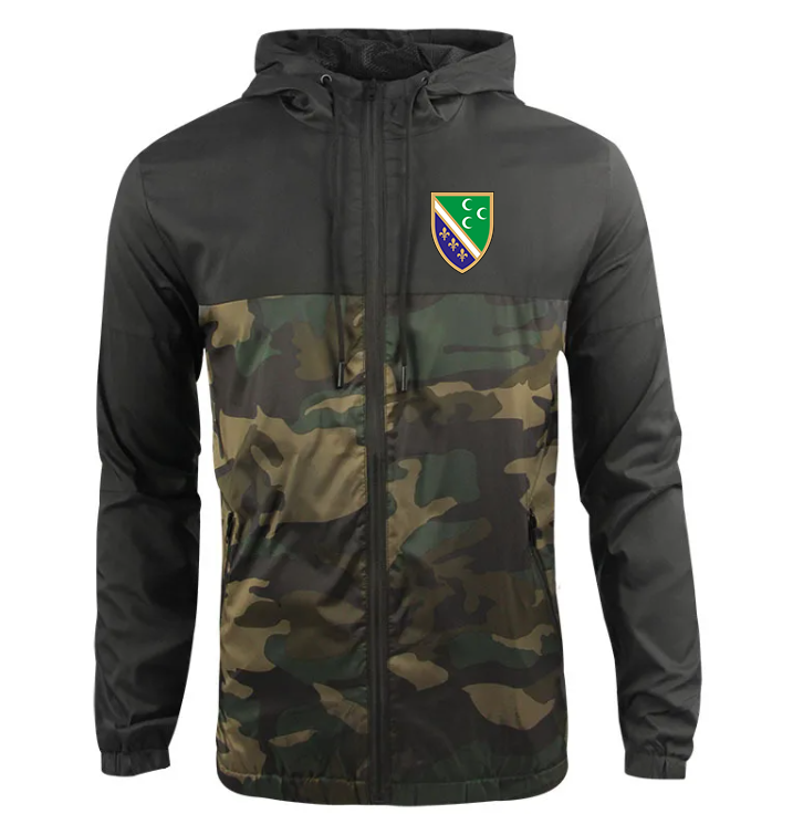 Detalji vojnog camouflage stila na ovoj jakni se stapaju s kulturnim motivima Republike Bosne i Hercegovine i njenom historijom, stvarajući upečatljivu i modernu interpretaciju tradicionalnog dizajna. Camouflage elementi dodaju dinamičnost jakni, istovremeno je čineći primjerenom za različite prigode, od svakodnevnih aktivnosti do sportskih i taktičkihš prilika.