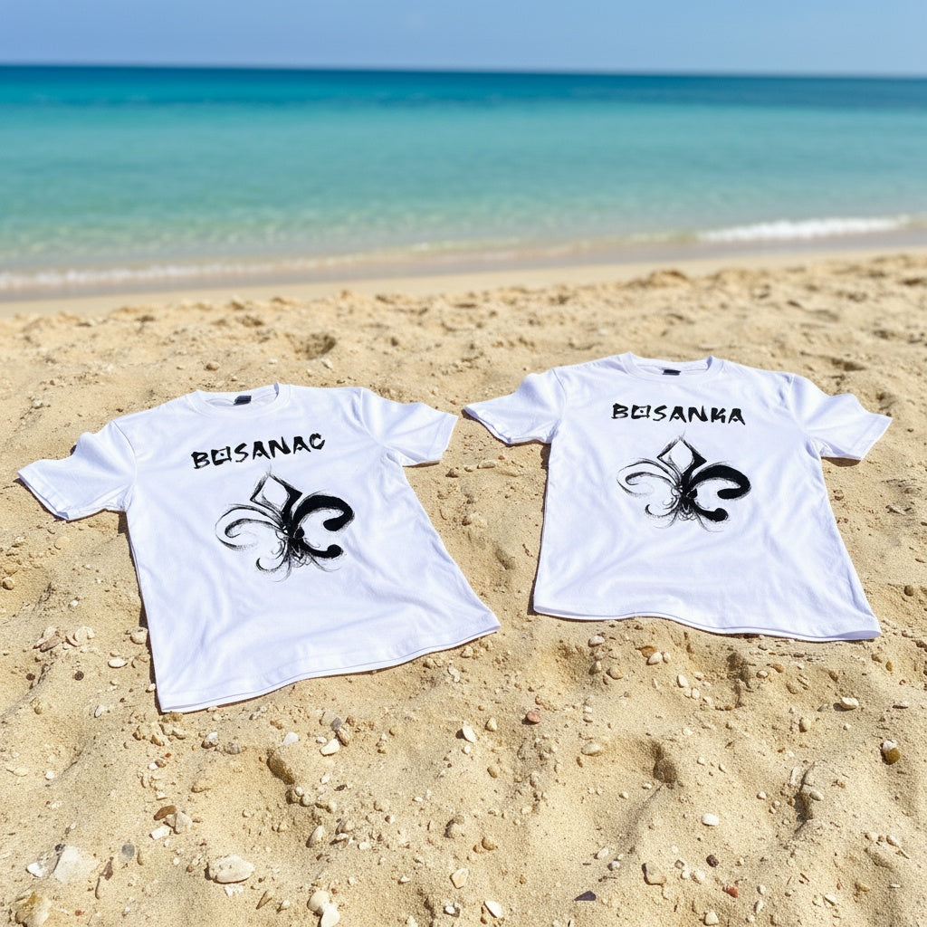 Matching couple majice “Bosanac & Bosanka” nisu samo komad odjeće – one su strastvena poruka ljubavi. Ljiljan, vječni simbol Bosne, ponosno stoji na dizajnu i povezuje dvije duše: ljubav prema domovini i ljubav prema voljenoj osobi.
